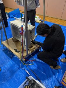 9月25日(木)に当社新人カリキュラムの一環として、「ルームエアコン施工研修」が行われました。